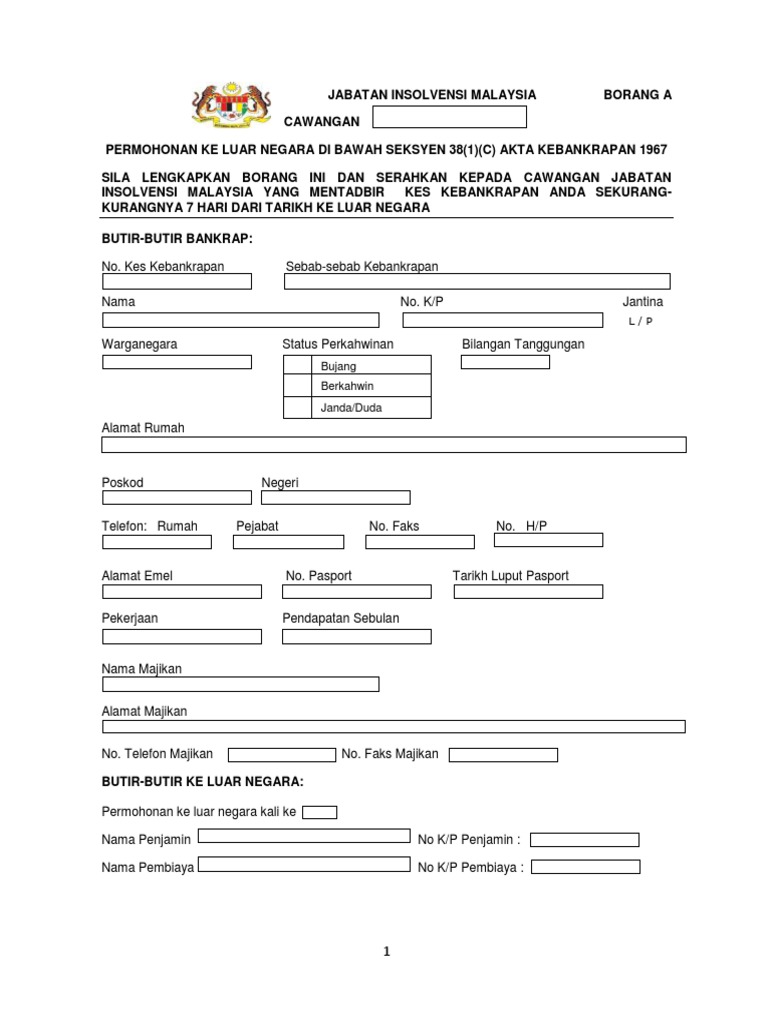 .contoh borang permohonan kerja, contoh borang tuntutan perjalanan, contoh borang penyertaan, contoh borang jawatan kosong related posts to contoh borang jawapan soalan objektif. Borang permohonan keluar negeri (urusan rasmi). Pejabat belanjawan negara kementerian kewangan malaysia presint 2, 62592, putrajaya, malaysia. Sebarang masalah/pertanyaan berhubung prosedur atau tatacara permohonan keluar negara boleh menghubungi pihak urusetia permohonan keluar negara atas urusan persendirian di. Pdf borang permohonan insuran ke luar negara persendirian lampiran a dan b smk permasjaya academia edu. Borang permohonan keluar negara urusan persendirian terkini. Borang permohonan keluar negara terkandung dalam surat pekeliling am bilangan 3 tahun 2012, khasnya pada lampiran 1 dan 2. Bagi bpn 2.0, permohonan baru sudah boleh dibuat. Borang permohonan untuk salinan sijil kelahiran application for a copy of birth certificate. Salinan pasport (ahli yang bukan warganegara malaysia) d. This application form must be: Selain itu, anda juga boleh hubungi kami di talian 018 9652 800 (waktu pejabat) untuk dapatkan maklumat segera. Sebarang pertanyaan, sila berhubung dengan urusetia keluar negara.