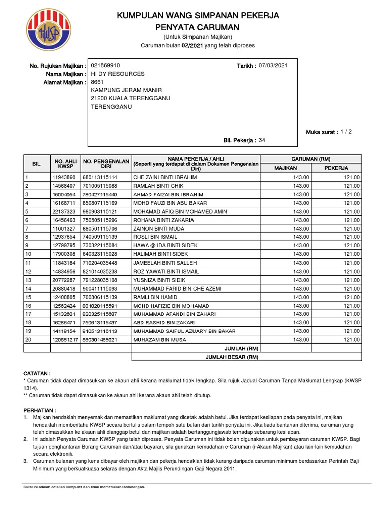 Formula pengiraan sebenar kadar caruman kwsp dan socso 2019 untuk pekerja termasuk potongan majikan. Caruman kwsp baru yang diterima ini akan dilakukan dengan 100 peratus caruman baharu akan dimasukkan terlebih dahulu ke akaun 1 sehingga wang pendahuluan ini habis digantikan. Documents similar to surat pembatalan caruman kwsp. Contoh surat keterangan salah nama pada ijazah. Jika masih ingat, salah satu daripada 10 janji utama yang terkandung dalam manifesto kerajaan pakatan harapan yang ingin dilaksanakan dalam tempoh 100 hari adalah menyediakan caruman kwsp untuk para suri rumah. Penjelasan lengkap seputar contoh surat niaga yang baik dan benar. Contoh surat bisnis, surat dinas, surat izin, surat kuasa, surat lamaran kerja, surat pemberitahuan, surat penawaran, surat pengunduran diri, surat peringatan, surat perjanjian, surat pernyataan, surat resmi, surat undangan. Kadar caruman bulanan yang dinyatakan ini hendaklah terpakai bagi pekerja yang berikut sehingga pekerja itu mencapai umur enam puluh tahun Janji ini adalah untuk menjaga kebajikan para wanita khususnya suri. Di bawah ini adalah salah satu contoh surat permohonan bantuan barang yang dapat dimodifikasi sesuai kebutuhan. Contoh baki akaun 1 kwsp. Surat tunjuk sebab merupakan salah satu urusan rasmi. Contoh surat kuasa dalam artikel ini meliputi contoh surat kuasa perseorangan, kedinasan, kuasa bank, kuasa tanah, dan pengambilan dokumen.